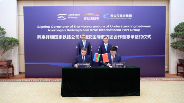 ADY and Xi'an Free Trade Port Construction and Operation Co., Ltd. also approved joint action plans to enhance cooperation in organizing container trains along the Trans-Caspian International Transport Route, increasing the capacity of railways, ports, and transportation across the Caspian Sea via the Middle Corridor, expanding access to Turkey and Europe through the Baku-Tbilisi-Kars railway line, and attracting additional cargo flows by developing a data-driven traffic scheduling system.