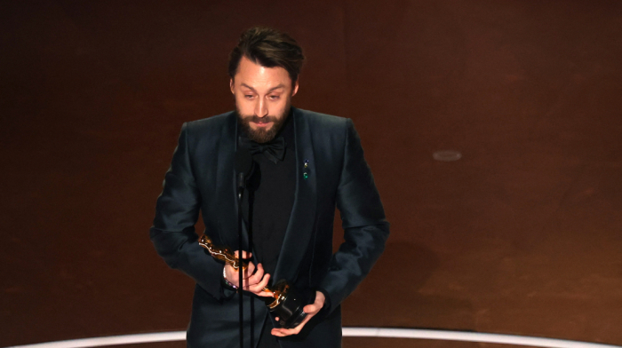 Culkin, 42, was the heavy favorite after winning the BAFTA, Golden Globe, Critics’ Choice, and SAG Awards for his performance. The film, about two cousins on a Jewish heritage tour in Poland, was also nominated for Best Original Screenplay.