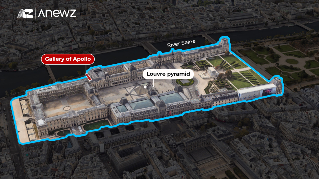 Four masked thieves used a vehicle-mounted mechanical lift to reach an upper window leading into the Galerie d’Apollon (Apollo Gallery), near the Seine River.