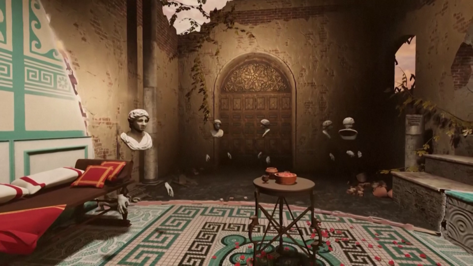 A key component of the exhibition is the virtual reality tour of the Villa of the Mysteries, one of Pompeii’s most iconic suburban villas. Using VR headsets, visitors walk through digitally recreated baths, kitchens and ceremonial rooms in a metaverse environment, exploring the house as it would have looked moments before the eruption. These scenes were developed in collaboration with Madrid Artes Digitales, which provided the visual recreations used in the metaverse experience.