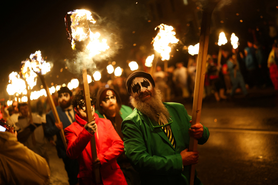 Hundreds took part in the night-time procession, which saw leaders in Viking dress followed by crowds in assorted costumes moving through the town with paraffin-soaked torches.