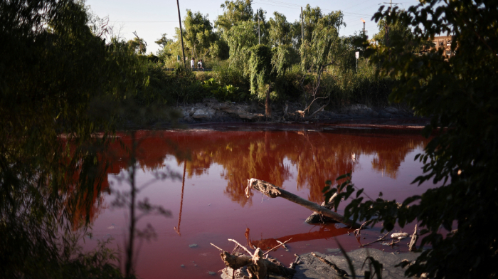 The Sarandí stream in Buenos Aires, Argentina, turned bright red on Thursday for unknown reasons, raising concerns among authorities and residents. The waterway, which flows into the Río de la Plata, is under investigation to determine the cause.