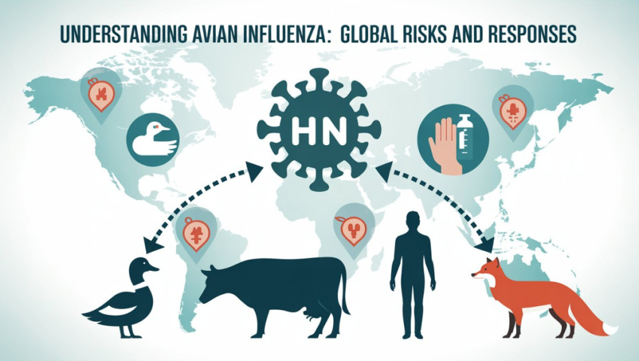 Avian influenza, commonly known as bird flu, is an infectious viral illness caused by influenza A viruses that primarily affect birds but can occasionally infect mammals, including humans. While wild aquatic birds serve as the natural reservoir for these viruses, domestic poultry are particularly susceptible to infection. The virus is classified into different subtypes based on two surface proteins: hemagglutinin (H) and neuraminidase (N).