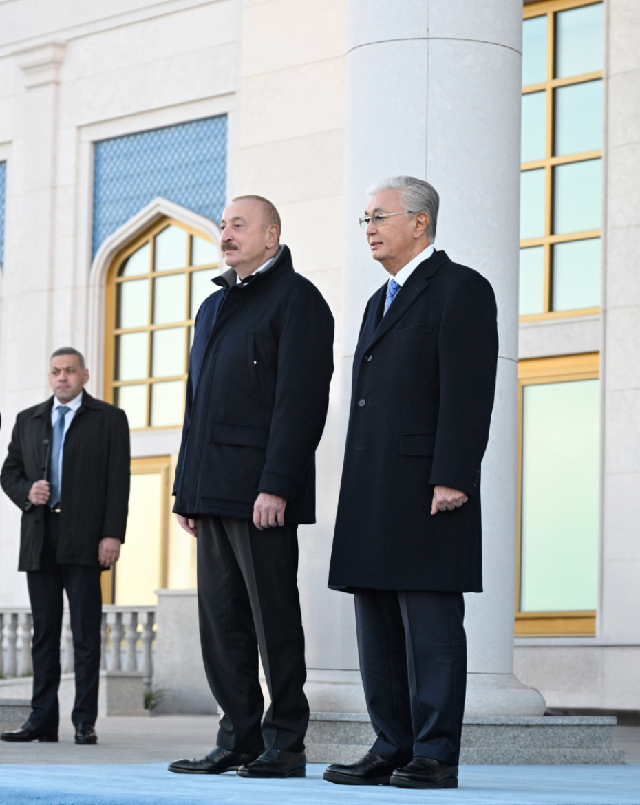 President Ilham Aliyev was welcomed by President of Kazakhstan Kassym-Jomart Tokayev.