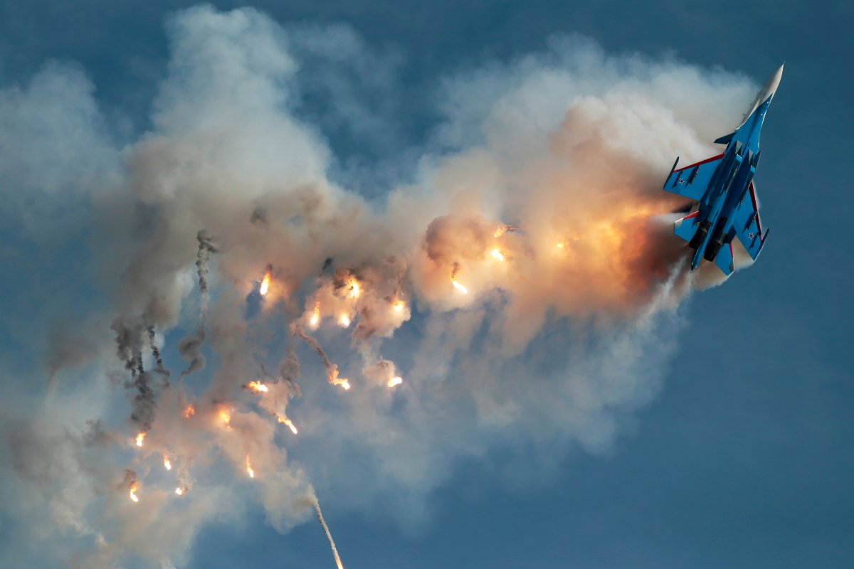 The aircraft is highly manoeuvrable thanks to thrust-vectoring engines and modern avionics, and is operated by the air forces of Russia, Kazakhstan, Belarus and others.