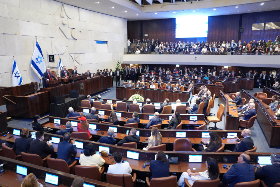 Trump's remarks were briefly interrupted when two members of the Knesset, Ofer Kassif and Ayman Odeh of the Hadash–Ta’al party, staged a silent protest holding a “Genocide” sign. They were quickly removed, prompting applause from other lawmakers. Trump quipped, “That was very efficient.”