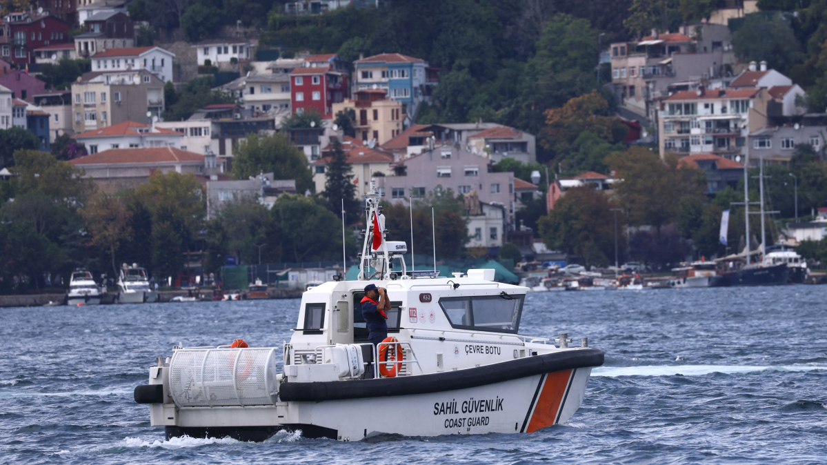 A Turkish Coast Guard officer uses binoculars during a search operation in Istanbul, Türkiye, 27 August, 2025.
