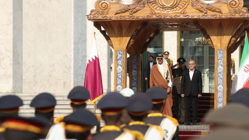 According to Iran's state news agency IRNA, President Pezeshkian has already welcomed the Amir at the Saadabad Palace Complex.