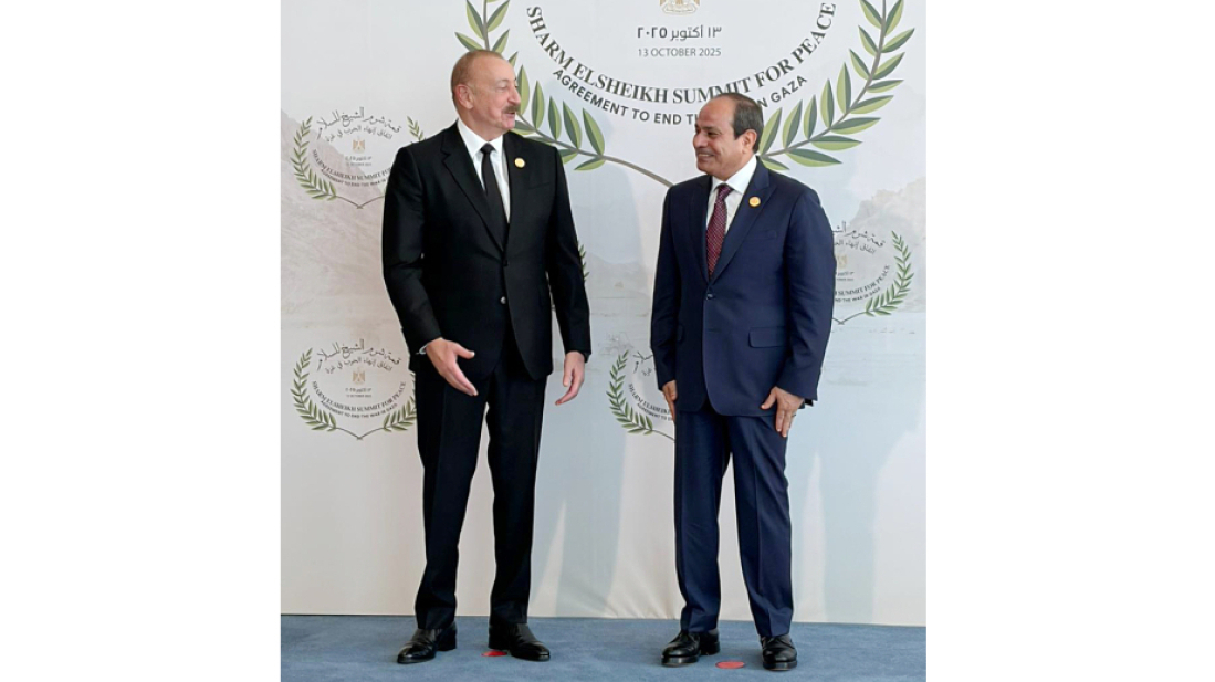 Aliyev was welcomed on arrival at the International Congress Centre by Egyptian President Abdel Fattah el-Sisi, host of the summit, which follows the recent Gaza ceasefire agreement brokered by the U.S., Egypt and Qatar.