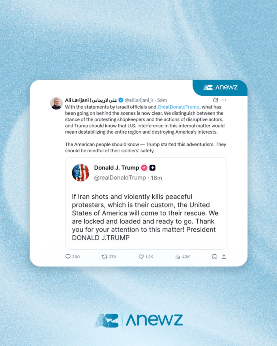 Top Iranian official Ali Larijani responded to Trump's comments warning that U.S. interference in domestic Iranian issues would equal the destabilisation of the whole region. Iran backs groups in Lebanon, Iraq and Yemen.