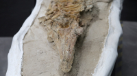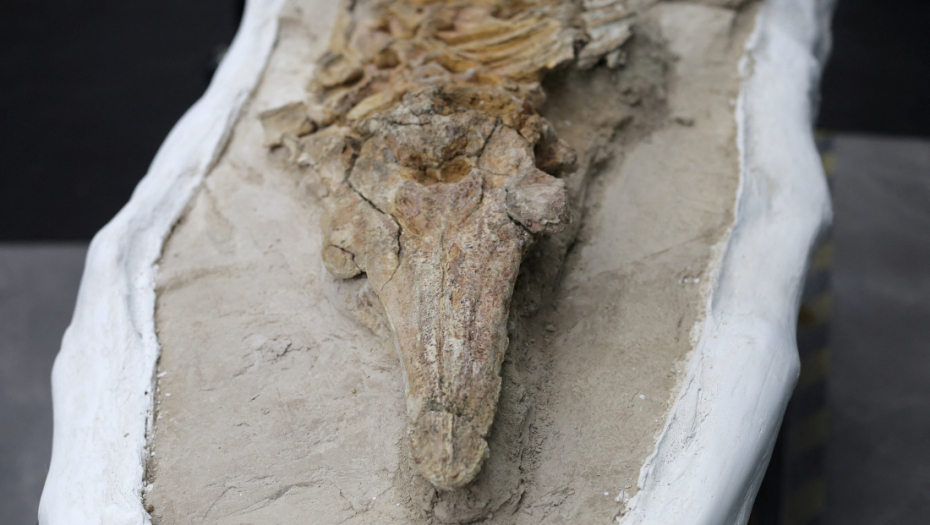 Palaeontologists in Peru unveiled the fossilized skeleton of an ancient, dolphin-like creature estimated to be between 8 and 12 million years old.