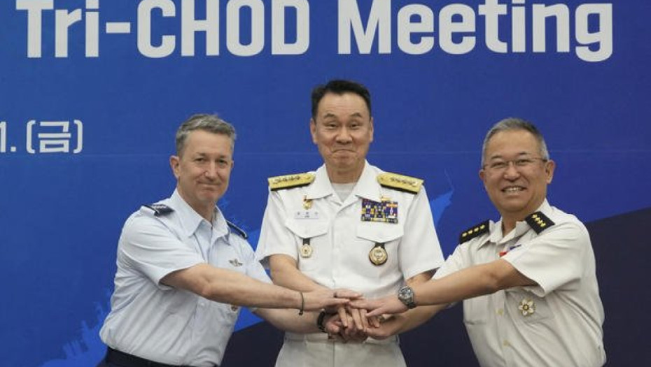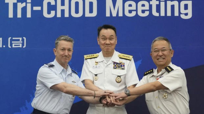 The drills came on the same day as a high-level meeting in Seoul between the top military commanders of the three countries, where they pledged to deepen defence cooperation in the face of shared threats.