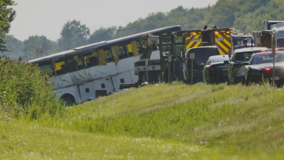 Some passengers were trapped inside the wreckage, while others were thrown from the bus when it flipped onto its side in a roadside ditch.