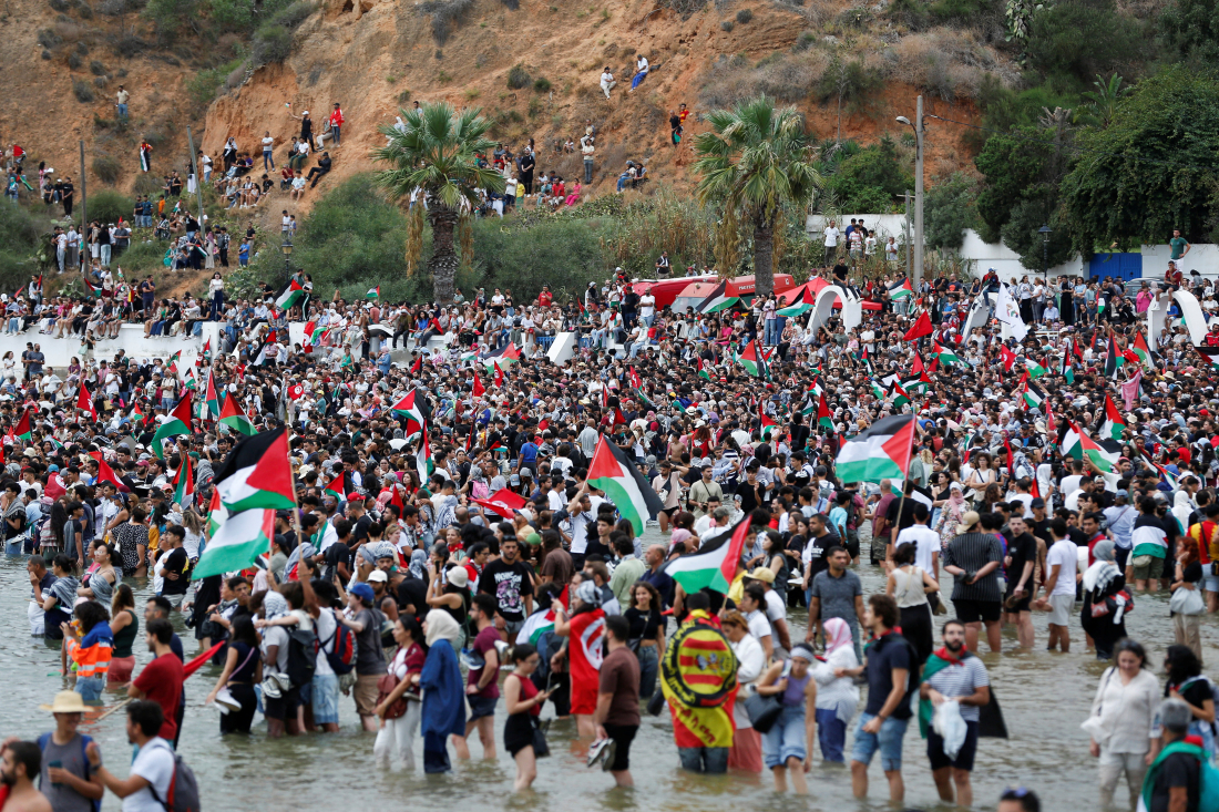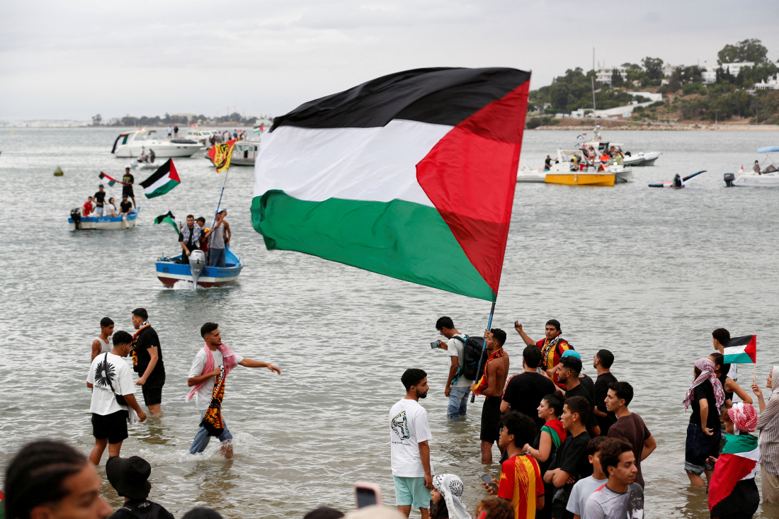 Thousands of Tunisians gathered on the beaches of Sidi Bou Said to support the pro-Palestinian activists.