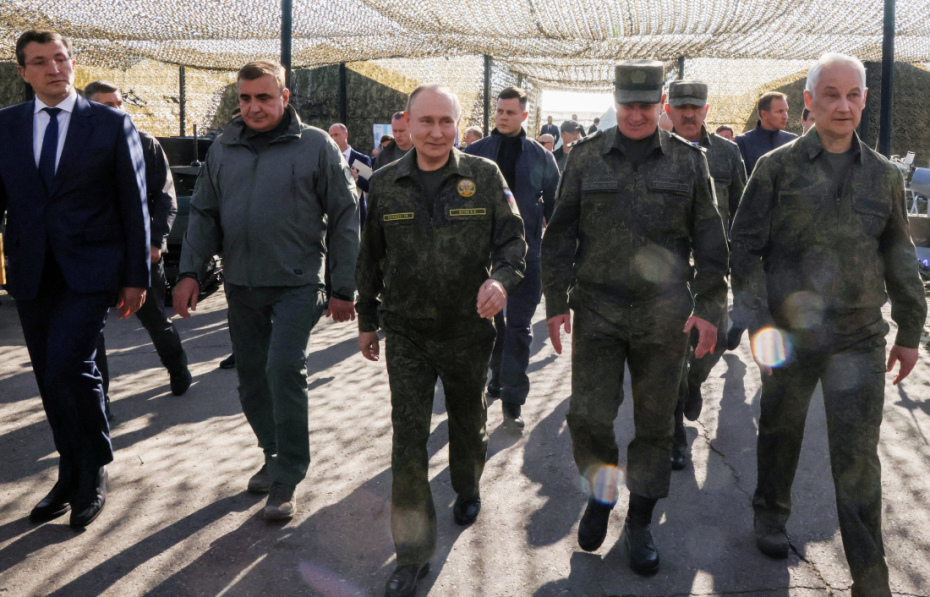 Dressed in military attire, Russian President Vladimir Putin met with top military officials on Tuesday in Russia's Nizhny Novogorod region, where some of the drills took place.