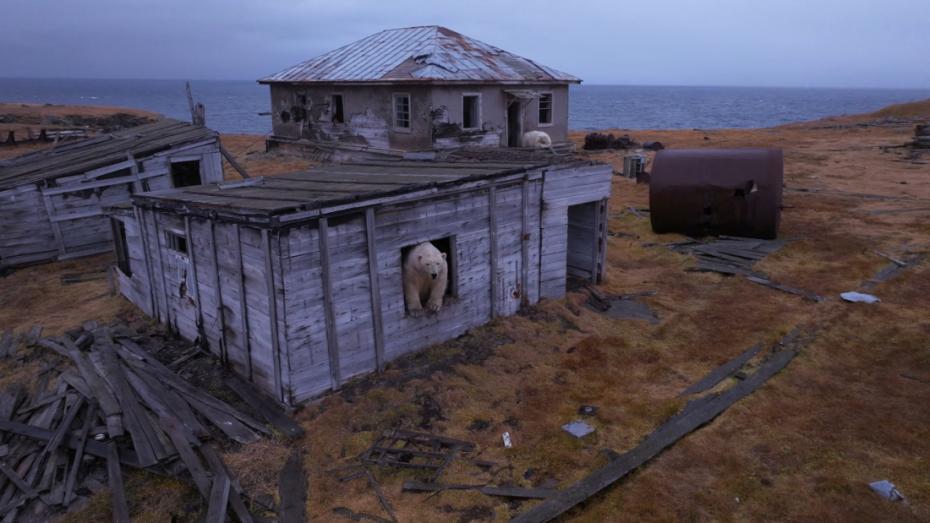The facility sits on Kolyuchin Island, off the far northeastern coast of Russia in the Chukchi Sea. Scientists abandoned it soon after the fall of the Soviet Union, leaving behind structures now overtaken by nature, and, it appears, polar bears.