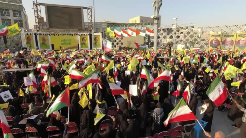 A large crowd filled Imam Hossein Square in Tehran on Thursday to mark the first anniversary of the assassination of Hezbollah’s leader Hassan Nasrallah, who was killed in an Israeli airstrike in Beirut last year.