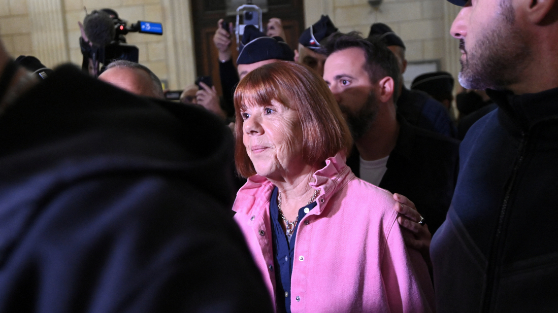 Gisèle Pelicot arrived at the Court of Appeal in Nîmes accompanied by her youngest son, as dozens of supporters gathered outside holding banners.