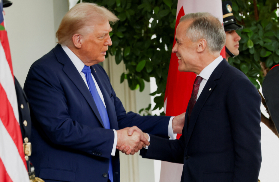 Carney and U.S. President Donald Trump, both smiling, shook hands and chatted for a few seconds before entering the building. Their schedule calls for a face-to-face meeting followed by lunch.