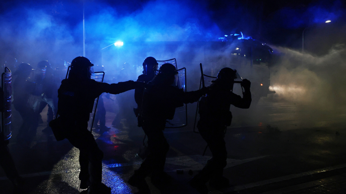 After the march, some protesters threw firecrackers and barriers at riot police, who responded with tear gas and water cannon. State broadcaster RAI said one of its journalists was hit by a stone and hospitalised, while Ansa reported a second journalist and several police officers were also injured.