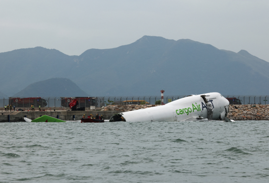 The Boeing 747 involved in the deadliest airport incident in the financial hub in more than 25 years also fell into the water and was partially submerged, but all four crew members on board escaped.