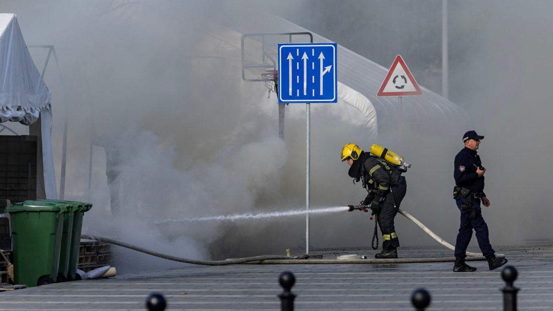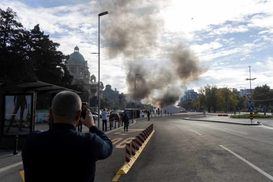 A few shots were fired and then a fire broke out inside the tent, one of several erected this year by supporters of President Aleksander Vucic during anti-government protests.