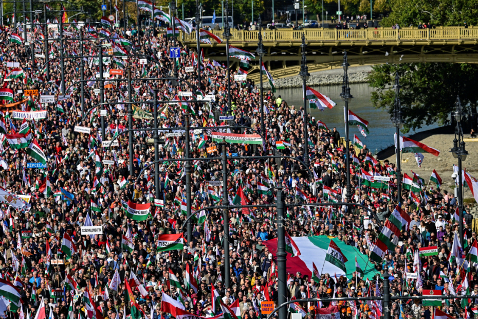 Tens of thousands of Viktor Orban supporters marched in Budapest on Thursday to show support for the nationalist premier on a key Hungarian anniversary, as he faces the most acute threat to his 15-year rule from a pro-EU opposition party ahead of 2026 elections.