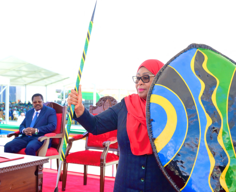 The 65-year-old, one of only two female heads of state in Africa, took the oath of office at a ceremony at a military parade ground within the State House in the capital Dodoma.