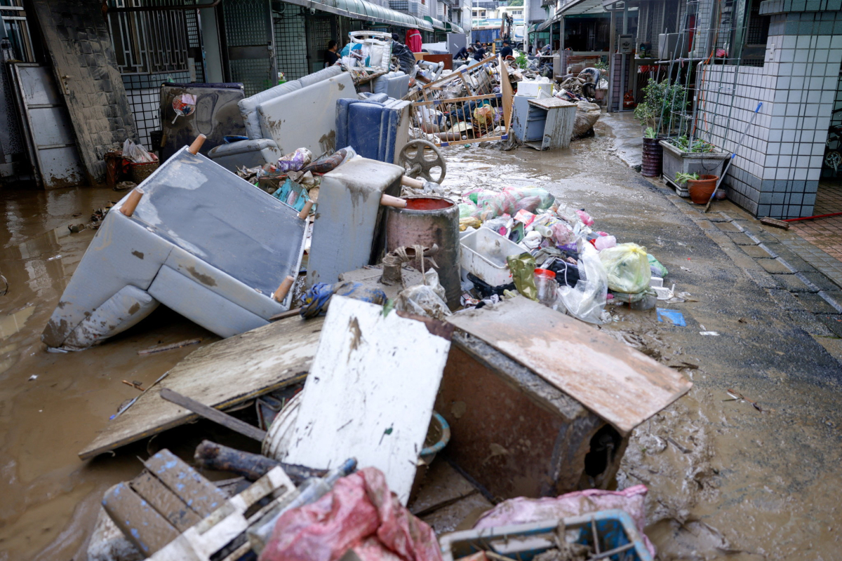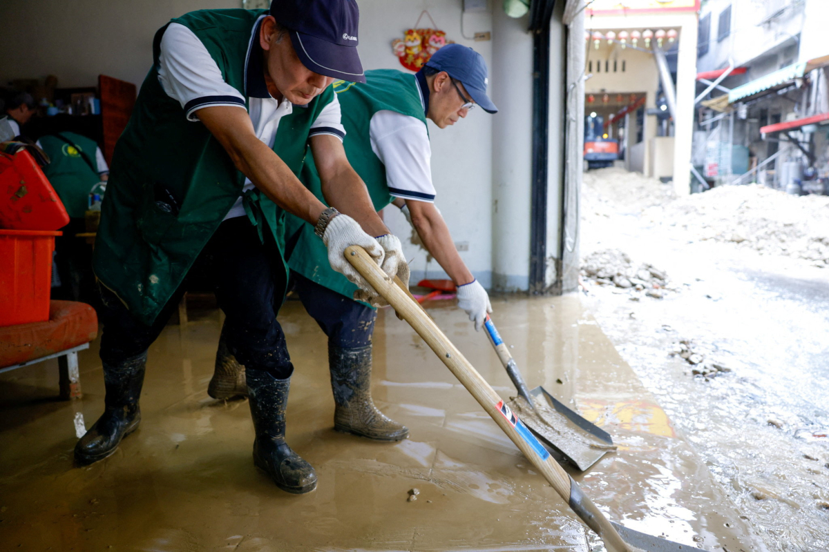 Streets and homes in Taiwan's Yilan County were left inundated with mud and rubble on Wednesday (12 November) after floodwaters swept through residential areas, forcing residents to wade through puddles of water and clear debris from damaged homes.