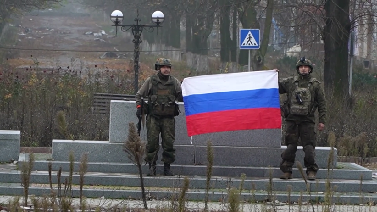 The news dominated Russia's morning broadcast on Channel One state TV. Footage showed troops calmly hoisting the Russian tricolour in what appeared to be the city centre, the camera panning to reveal a landscape scarred by heavy artillery.