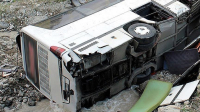 At least 13 dead and 30 injured after a tourist bus plunges into a 150-meter ravine in southwestern Colombia. Mechanical failure and speed suspected.