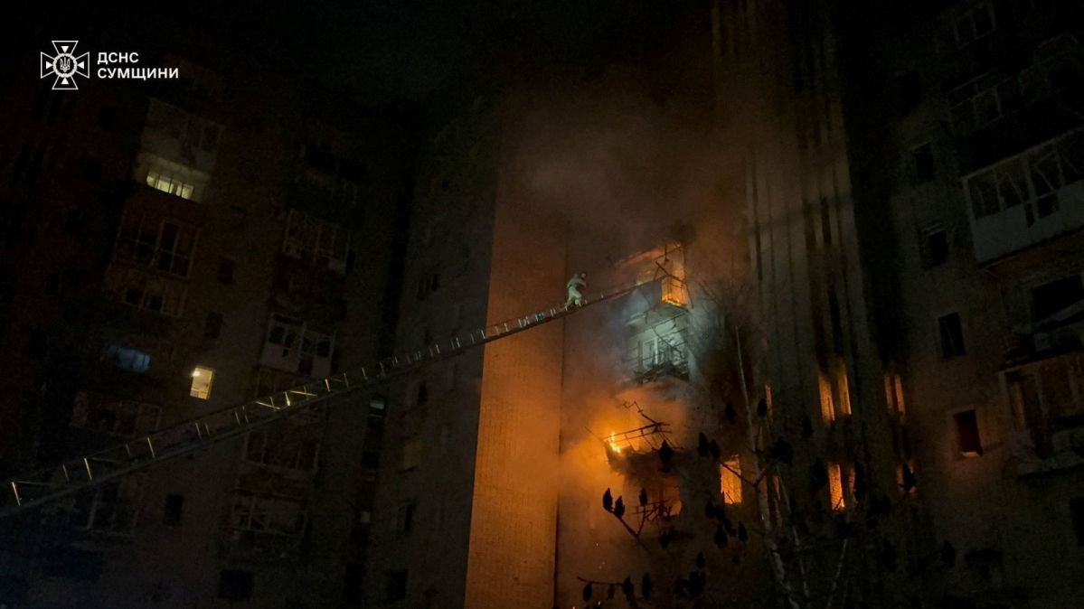 Emergency crews were deployed to the northeastern Ukrainian city of Okhtyrka on Monday morning after a residential high-rise was devastated by a Russian drone barrage, leaving several civilians wounded as the conflict approaches the end of its fourth year.