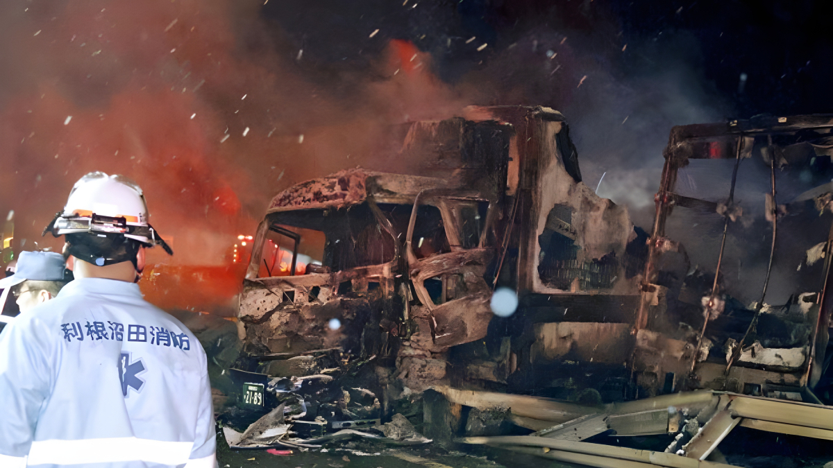 Gunma prefectural highway police said the crash began when two trucks collided near the town of Minakami, blocking several lanes.
