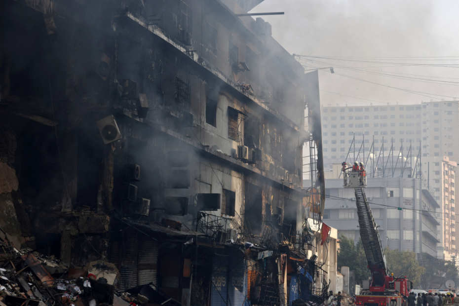 The blaze broke out late on Saturday at Gul Plaza, a multi-storey complex on MA Jinnah Road in the city’s busy commercial district. The fire burned for more than 24 hours, severely hampering rescue efforts in the densely populated area.