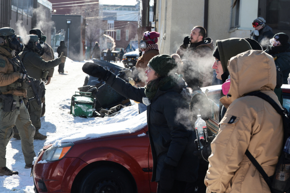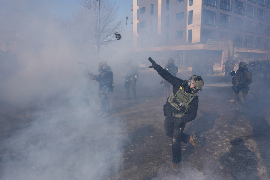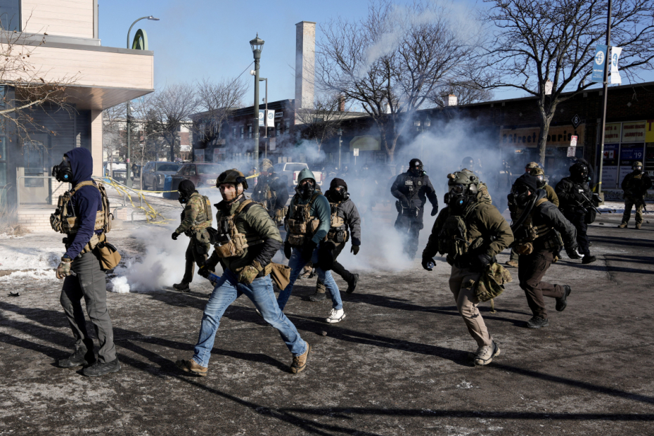 Footage circulating on social media and shared by news outlets showed people wearing tactical gear wrestling with the man on a snow-covered street before multiple shots were fired. Later video showed federal agents deploying tear gas as crowds gathered at the scene.