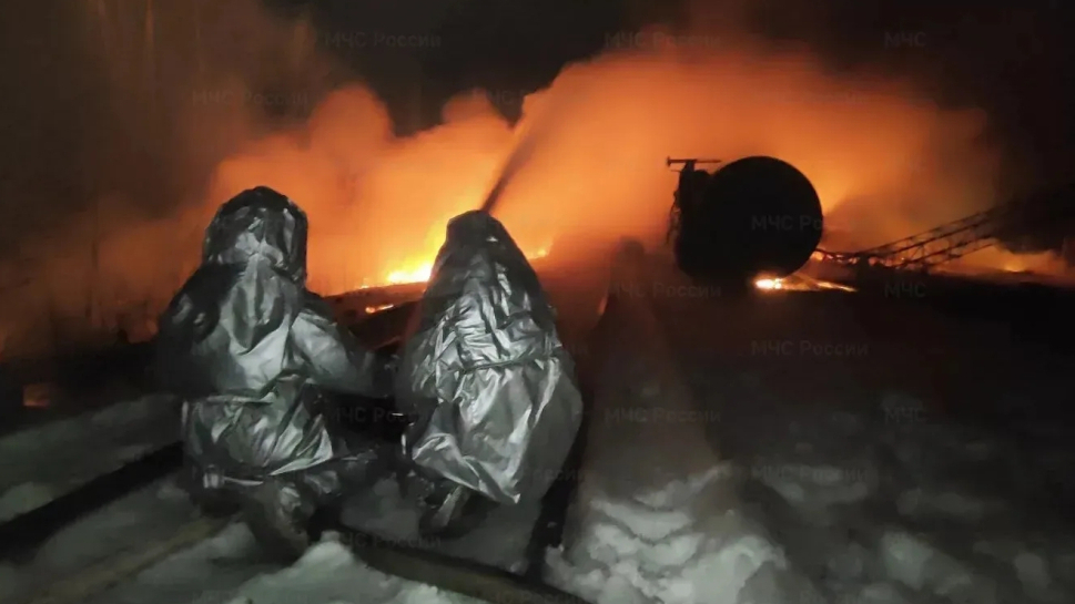 While Russian authorities have not commented on the cause, Ukraine-linked Telegram channel Supernova+ claimed the derailment and fire was caused by a drone attack.