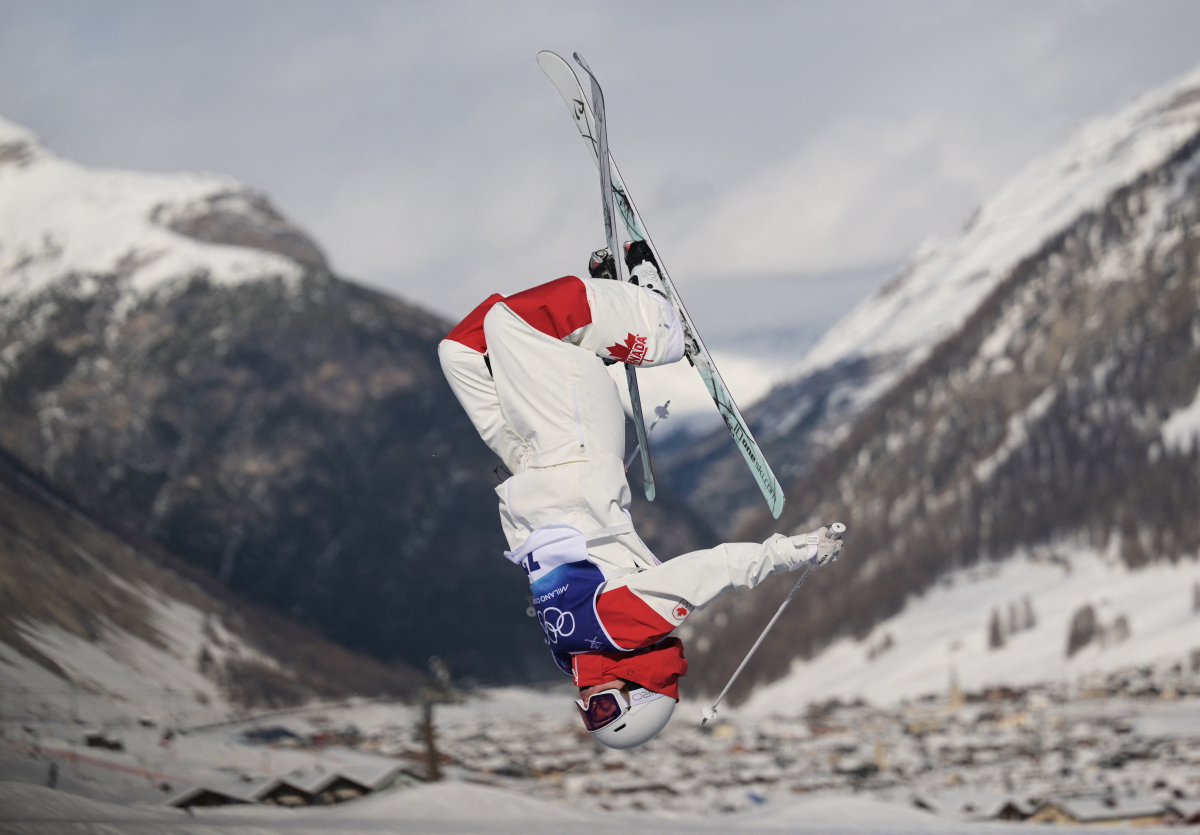 The moguls competition also produced one of the day’s most dramatic action shots, with Canada’s Jessica Linton captured mid-flip high above the course, mountains rising in the background during the final.