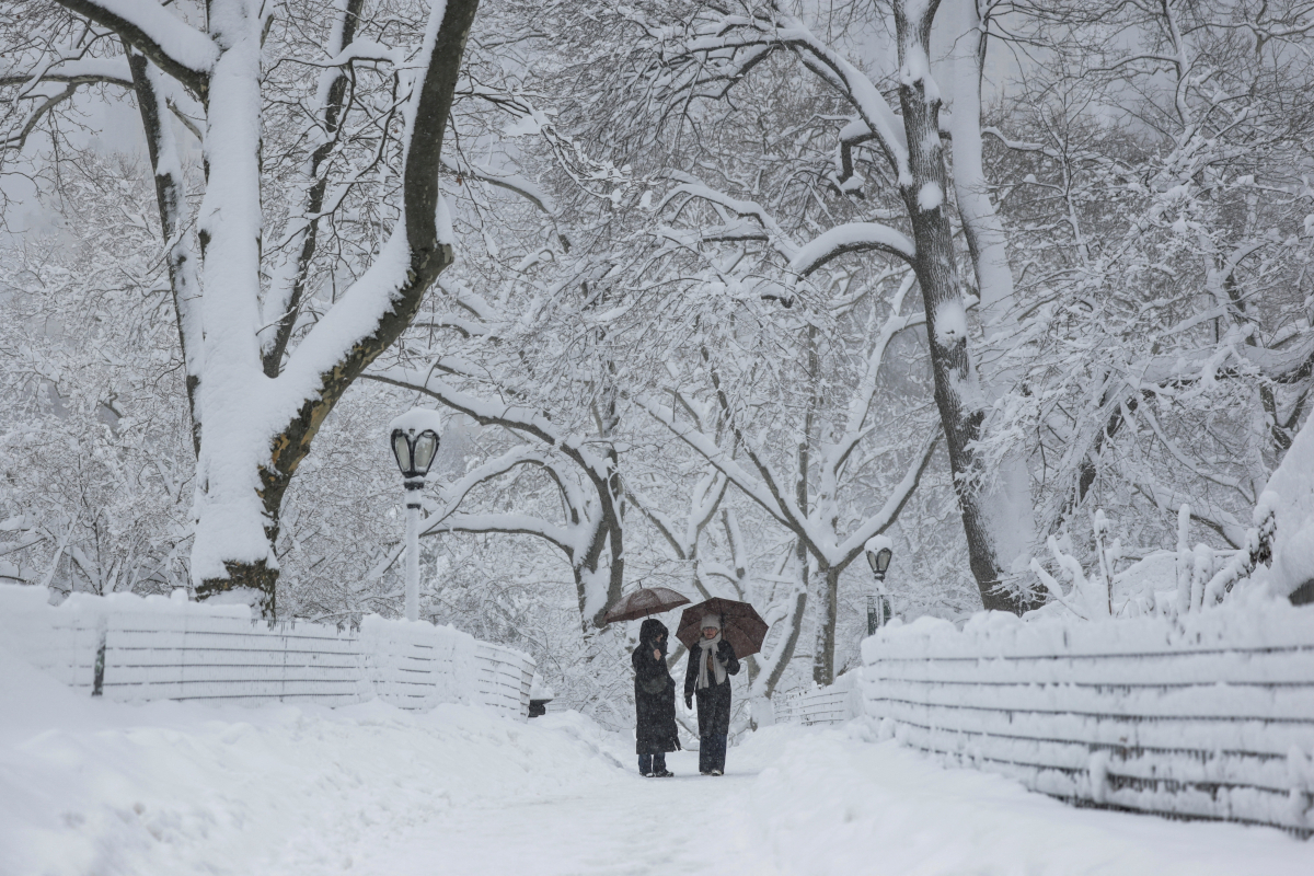 Despite the disruption, some New Yorkers ventured into snow-covered Central Park, where families built snowmen and staged snowball fights amid the deep drifts.