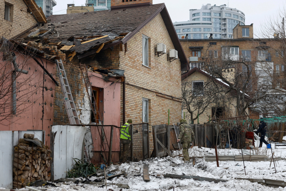 Authorities in Kyiv reported that falling debris from intercepted missiles and drones damaged buildings in three districts of the capital.