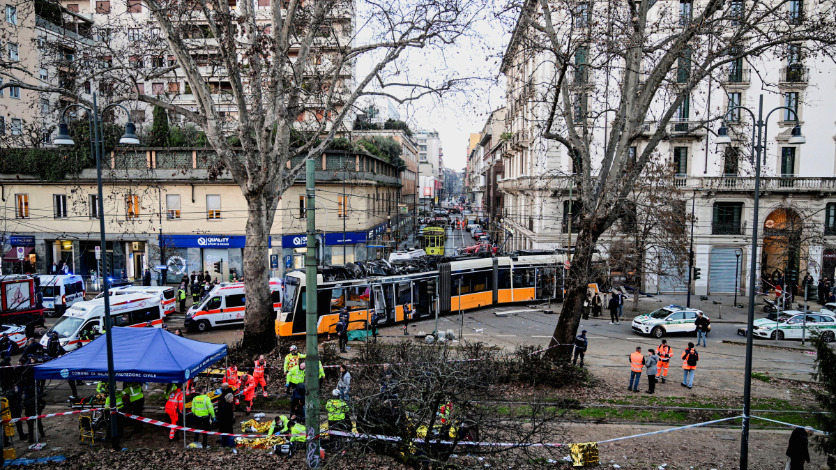 Two people were killed and around 40 injured when a tram derailed in central Milan on Friday (27 February), a spokesperson for the local fire service said.
