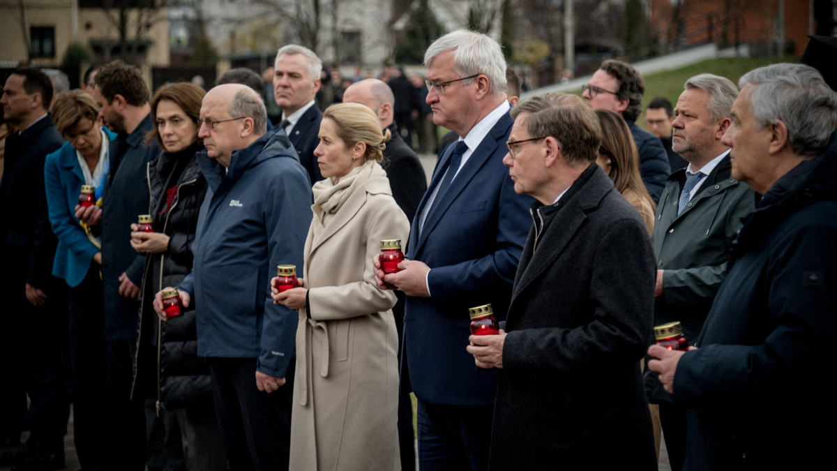 Ukrainian officials say Russian forces killed several hundred people in Bucha shortly after the start of the invasion in 2022. Kallas and around a dozen EU foreign ministers and other senior European officials made the trip there, amid tensions within the bloc over EU aid for Ukraine.