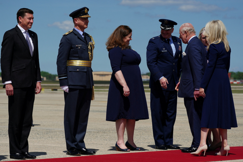 Charles and Camilla landed at Joint Base Andrews at around 2:30 p.m. ET (1830 GMT), where they were welcomed by diplomatic, state, and federal officials as well as senior members of the British embassy.