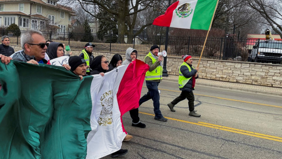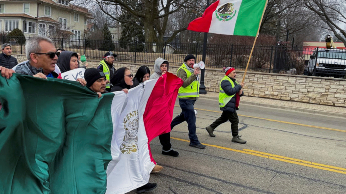 Demonstrators waved flags from Mexico, Belize, Honduras, and other Latin American nations, chanting slogans such as "Yes we can!" and "The people united will never be defeated!".