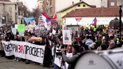 The wave of anti-corruption protests in Serbia continues to grow. On February 4, teachers and farmers joined students in an anti-government demonstration in the central city of Kragujevac. Thousands of people marched through the streets, holding banners and blowing whistles in protest.