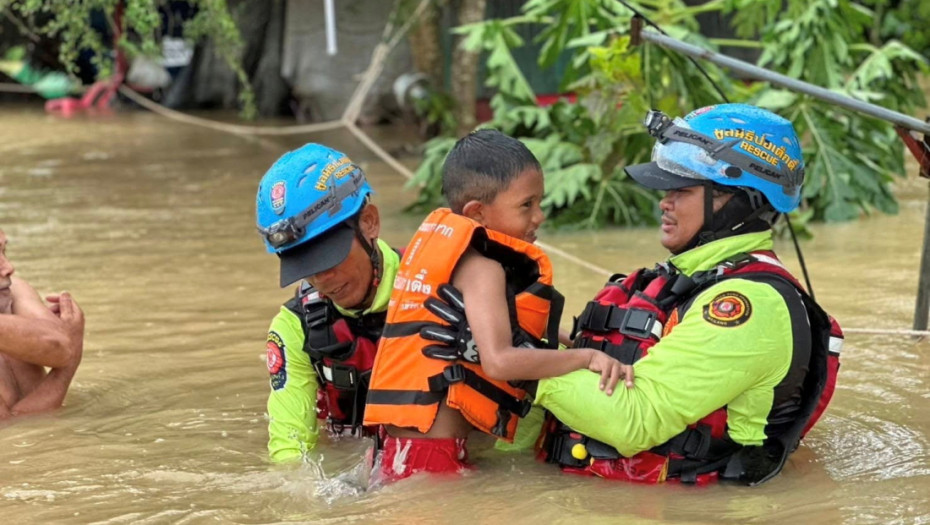 Another video footage showed rescuers in Sateng Nok District of Yala province carrying a baby out from the roof of a home hit by the floods on Saturday.