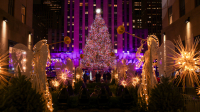 The Rockefeller Center Christmas Tree, positioned above the famous ice skating rink, will remain on display through mid-January, with a special 24-hour lighting on Christmas Day.