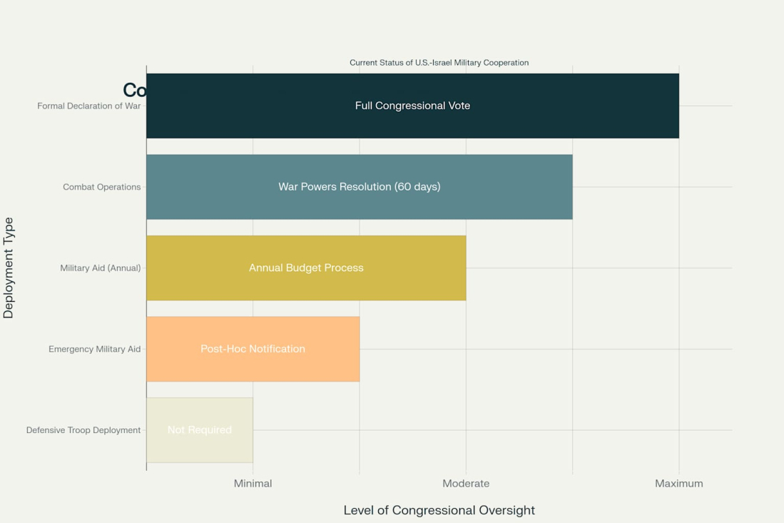 This analysis demonstrates that U.S.-Israel military cooperation has already reached unprecedented levels through current troop deployments, intelligence sharing, and financial support. However, expansion into full military partnership faces significant constitutional, political, and public opinion constraints that currently limit the scope of American involvement in offensive operations.